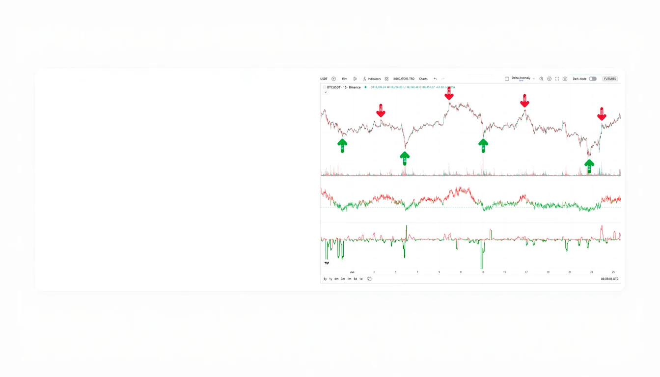 Monitoruj nierównowagę w 15-minutowym przedziale czasowym, aby identyfikować krótkoterminowe możliwości wejścia na rynek. Nasza platforma identyfikuje rozbieżności podaży i popytu, pomagając Ci podejmować strategiczne decyzje dotyczące wejścia i wyjścia.